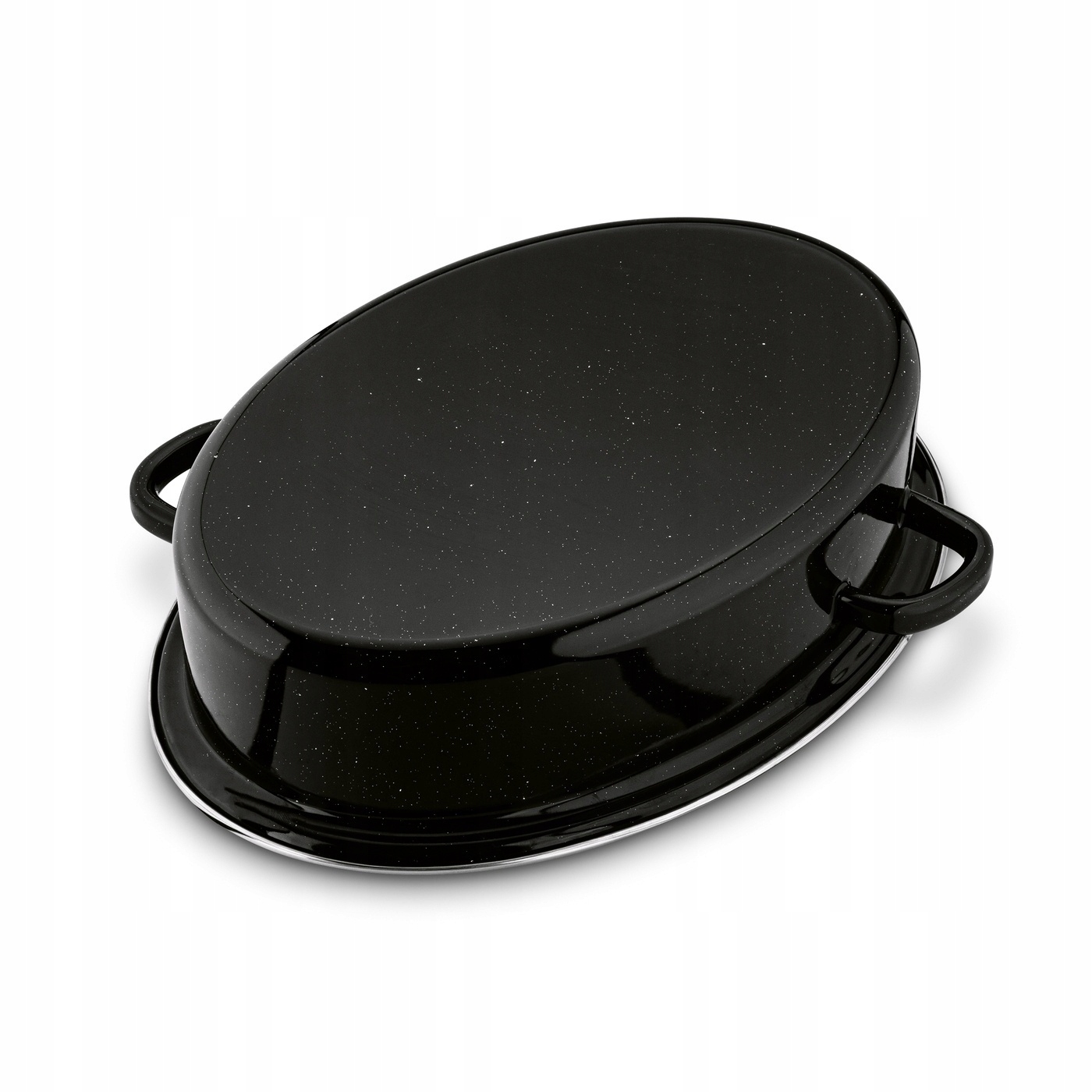 - Кришка посуду: чорна, крапчаста, емальована вуглецева сталь