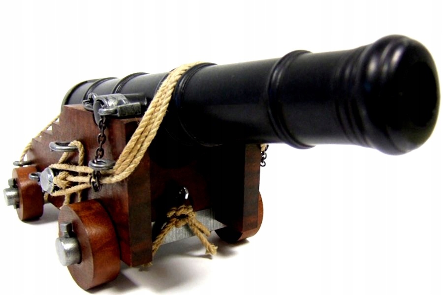 Репліка виготовлена частково з дерева (носія), частково з металу (бочка, осі колеса). Виглядає все це дуже солідно і достовірно відображає специфіку цього виду зброї. Система мотузок і гаків - дуже добре відтворена на моделі - показує, як постріл був зроблений з палуби корабля, не спричинивши його самознищення. На моделі також показано, як прикріпити важку бочку до дерев’яної конструкції причепа, а також встановлено рухомий дерев’яний клин, який відповідає за позиціонування бочки. Як відомо з історії та багатої пригодницької літератури, така гармата також була незамінним інструментом для кожного поважаючого себе капера. Сьогодні варто придивитися до такої зброї. У вас ніколи не буде забагато знань!