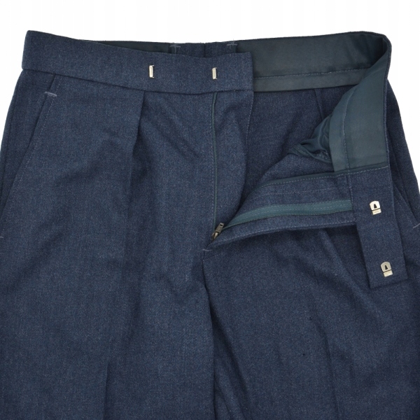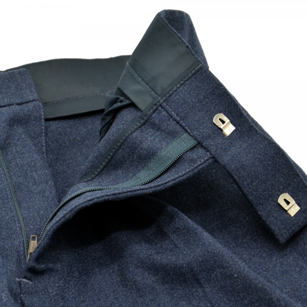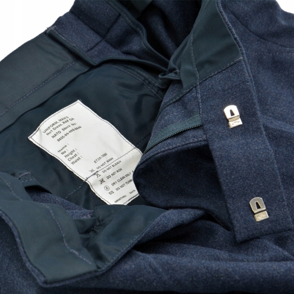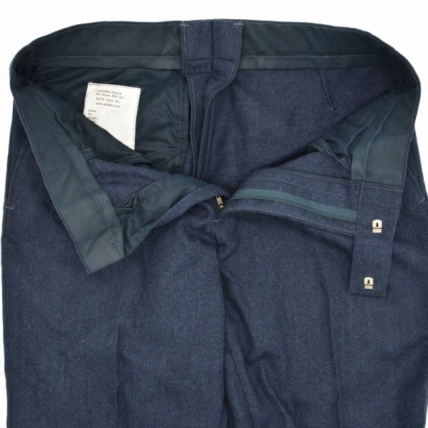 Оригінальні штани з ресурсів британської армії. Вони є частиною уніформи Королівських ВПС - №. 1 парадна форма. Виготовлений з щільного матеріалу. Штани мають дві кишені спереду і одну ззаду. Застібається на блискавку і два гачки всередині пояса. Штани не мають шлевки.