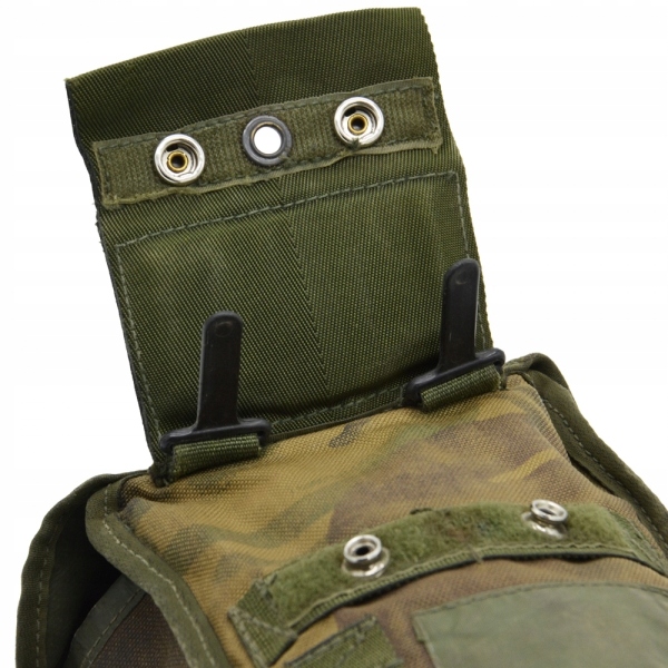 Оригінальна контрактна сумка з ресурсів британської армії. Він повністю виготовлений з дуже міцної Cordura. Спочатку використовувався для зберігання води в ємності «Респіратор Ейвон». Однак його можна легко використовувати для перенесення інших речей. Всередині сумки є ваги. Низ і верх додатково прогумовані. Його можна прикріпити до пояса за допомогою стрічкових затискачів або липучок із застібками. Ідеально підходить для тривалих походів або поїздок за місто.