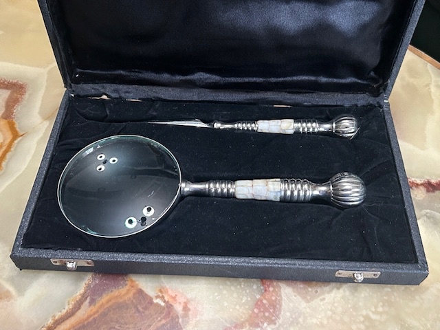 гарний, практичний і привабливий хромований великий відкривач для листів і лупа