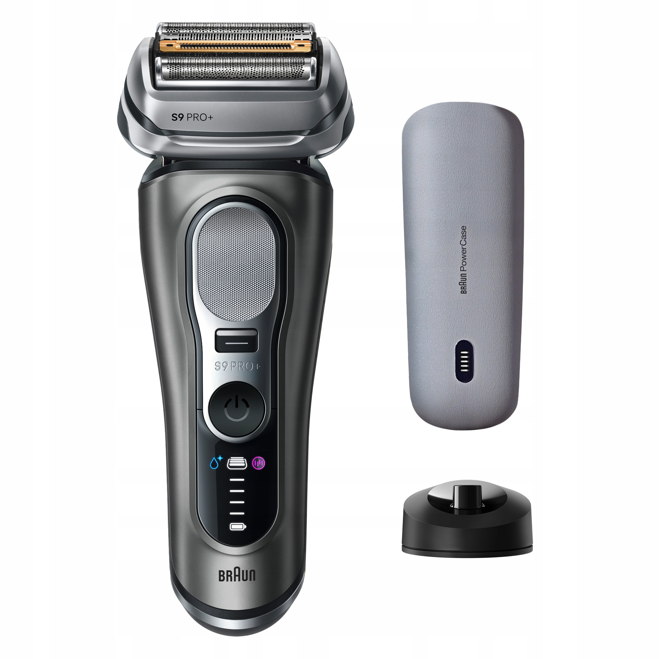 Електробритва Braun Series 9 PRO+ розроблена для чоловіків, забезпечує ідеальну точність і захист шкіри. Ультратонкі точні леза забезпечують найкраще гоління. Технологія 5+1 ідеально синхронізує леза Direct&Cut, тример ProTrimmer, плівку OptiFoil, що зволожує шкіру, захисне покриття SkinGuard і титанове лезо ProLift. Pro SensoAdapt аналізує густоту бороди 300 разів на секунду та автоматично регулює потужність гоління.