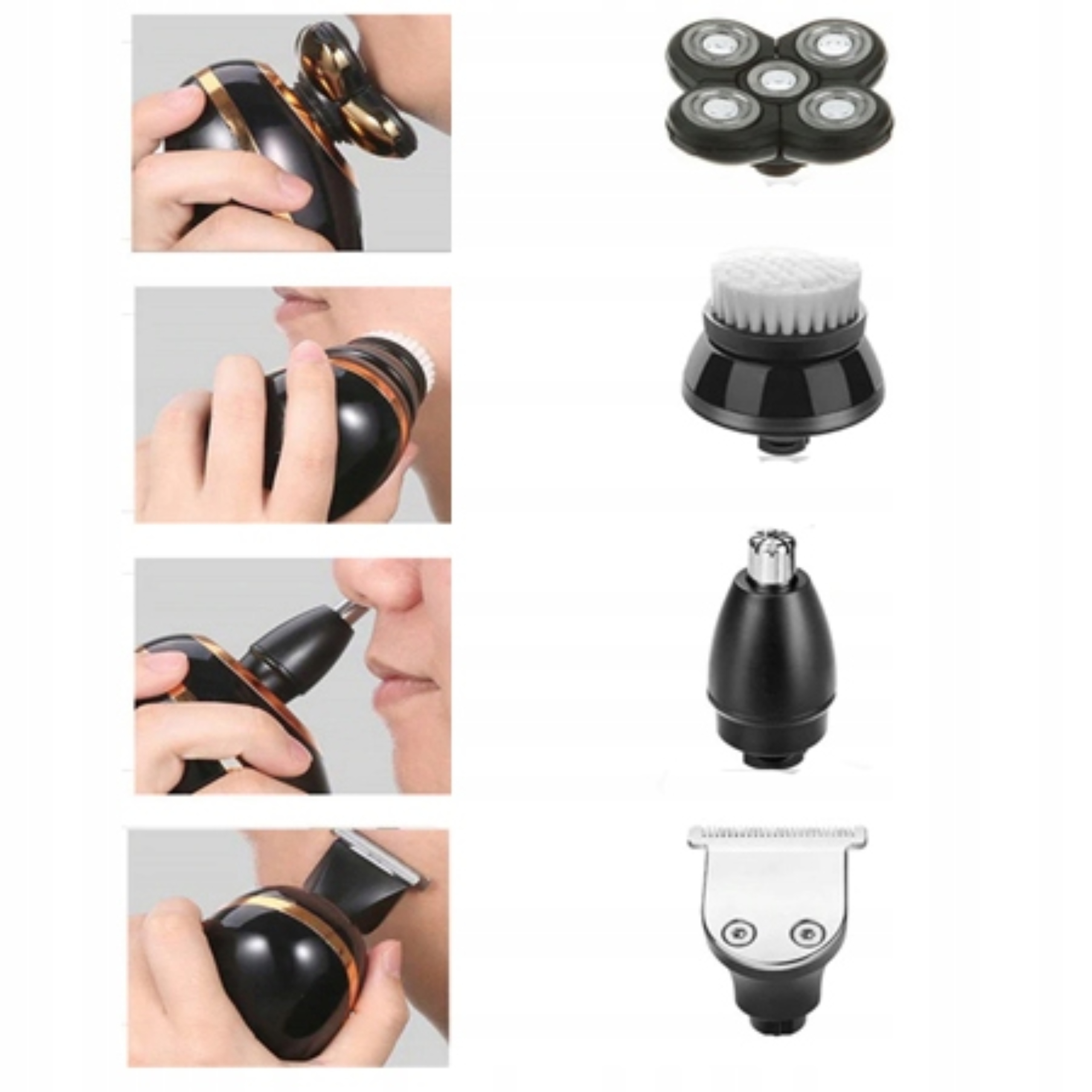 Набір бритви також включає головки - вони будуть корисні для людей, які хочуть позбутися волосся, бороди або використовувати їх як тример - видалити непотрібне волосся з вух, носа або грудей.