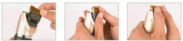 2. Натисніть на нижню сторону насадки великим пальцем, вставляючи ріжучу головку