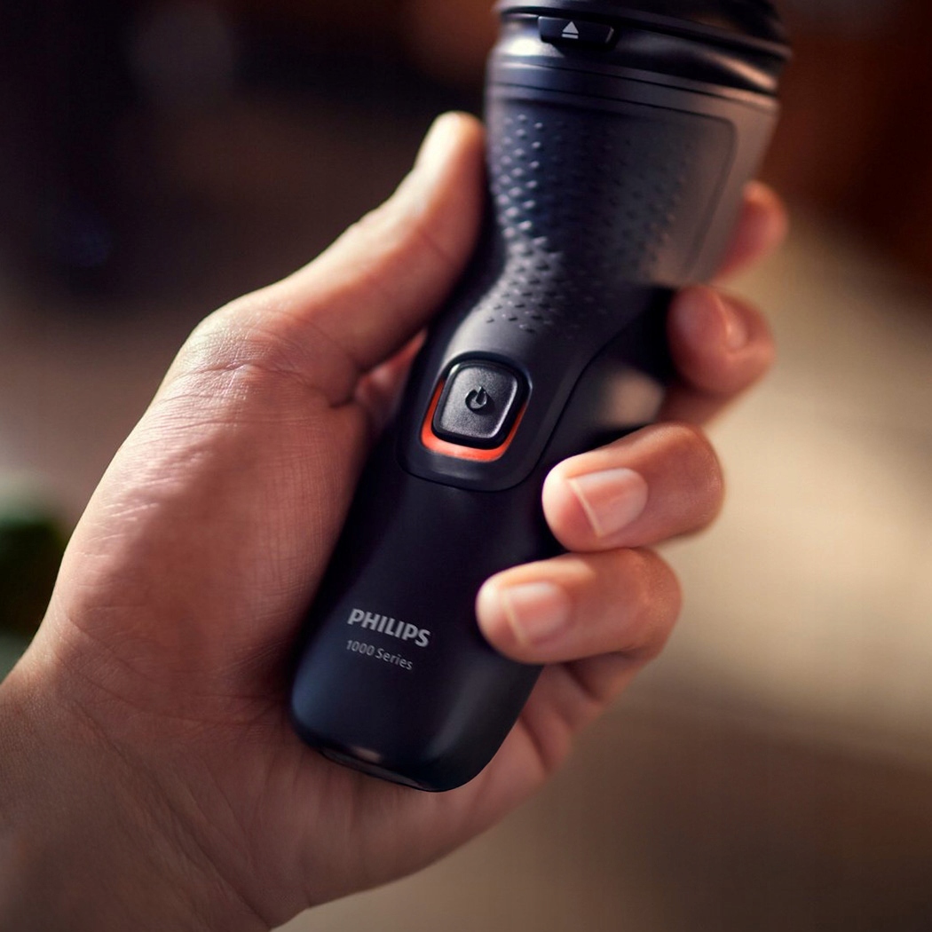Philips Shaver 1000 до надійної шиї з 27 самостійних лопатей Powercut , що забезпечує точне та комфортне гоління обличчя та голова. ергономічна ручка , водостійкість IPX7 та Легке очищення Використовуйте пристрій надзвичайно комфортним. Завдяки батареї , однієї зарядки достатньо для 40 хвилин роботи , індикатор заряду та проста робота підкреслюйте її практичність.