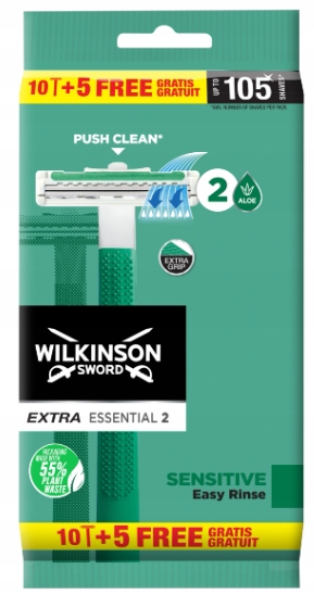 Відкрийте для себе надзвичайну гладкість і комфорт гоління з наповнювачами Wilkinson Sword Essential 2 Sensitive Easy Rinse - тепер у суперпакеті з 10 + 5 БЕЗКОШТОВНО! Ідеально підходить для людей з чутливою шкірою, вони забезпечують точне та безпечне гоління щодня.