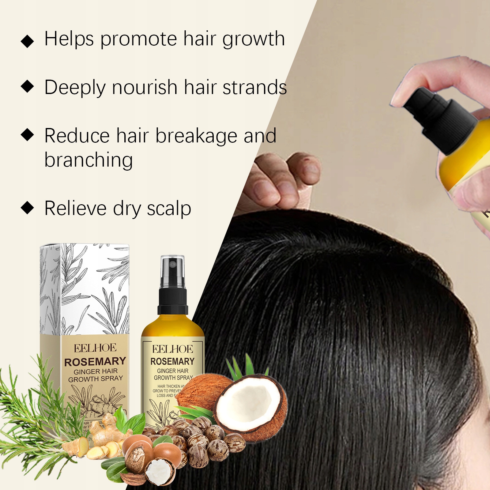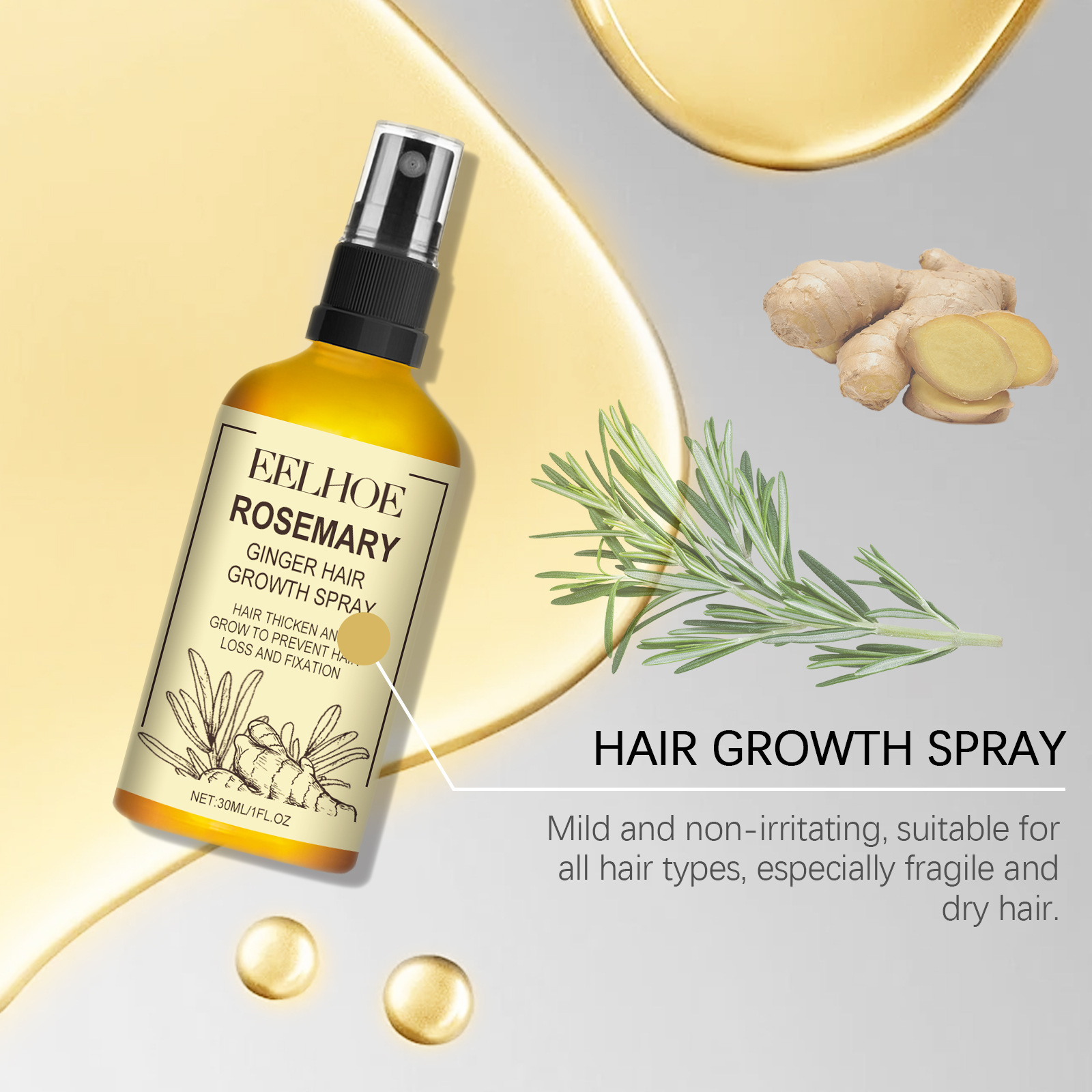 Бризок волосся з розмарином і імбиром, який відновлюється сухим, густим,