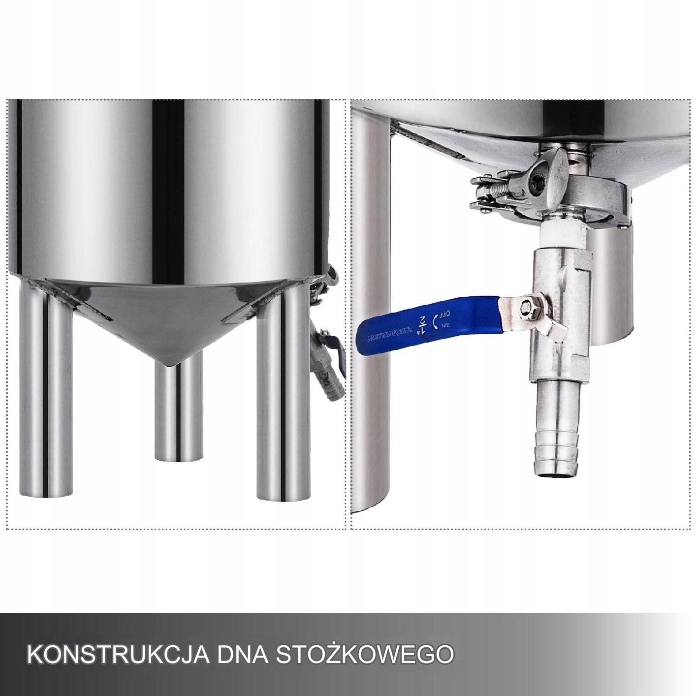 Конічна форма ємності сприяє ефективному осіданню дріжджів, що покращує якість напоїв. Це дозволяє легко видалити осад і забезпечує кращу циркуляцію рідин.