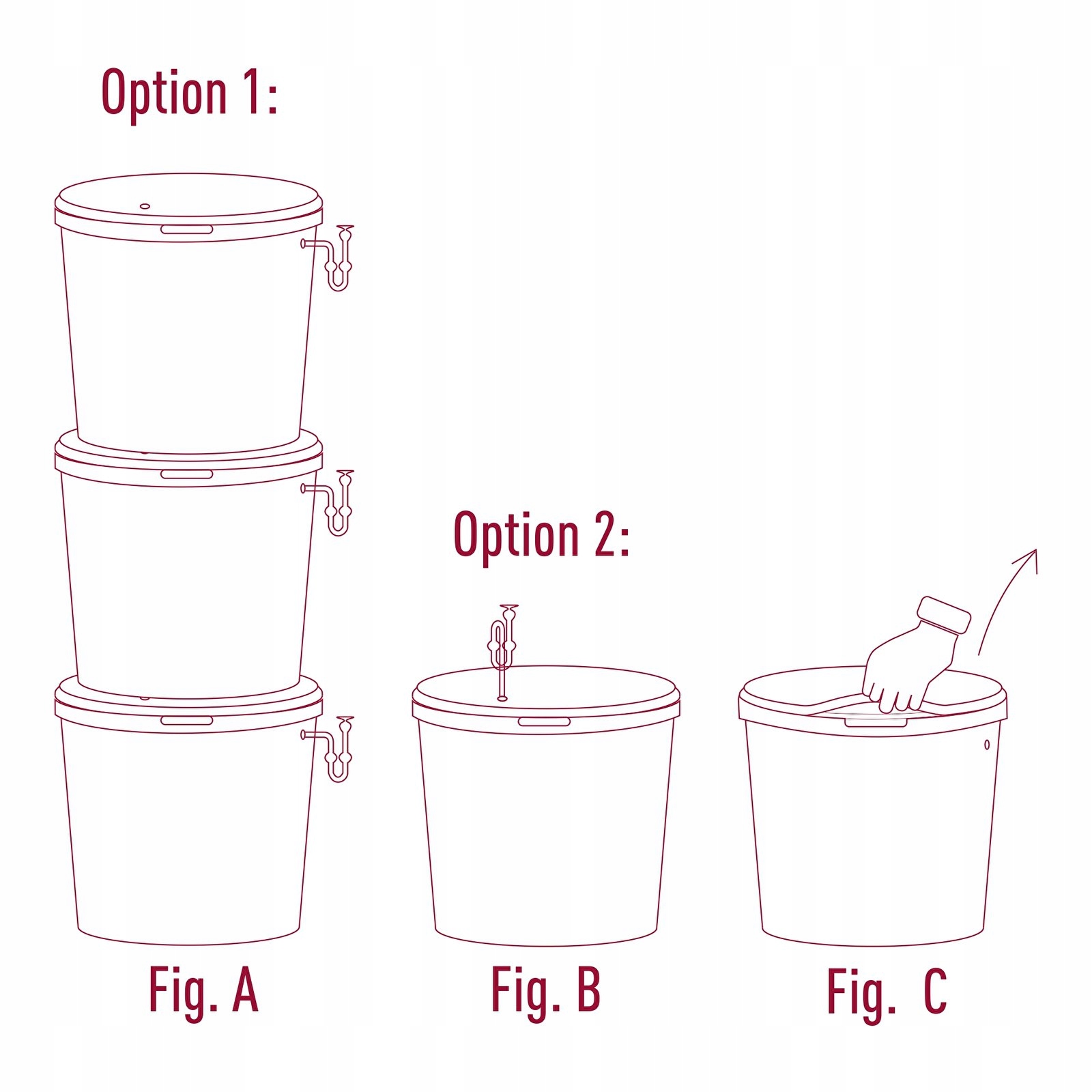 - Дві пробки в комплекті - до кожного контейнера входять дві пробки: одна з отвором, інша з ковпачком, щоб ви могли використовувати кутову трубку для бродіння як взаємозамінну з традиційною або, якщо необхідно, щільно закривати ємність.