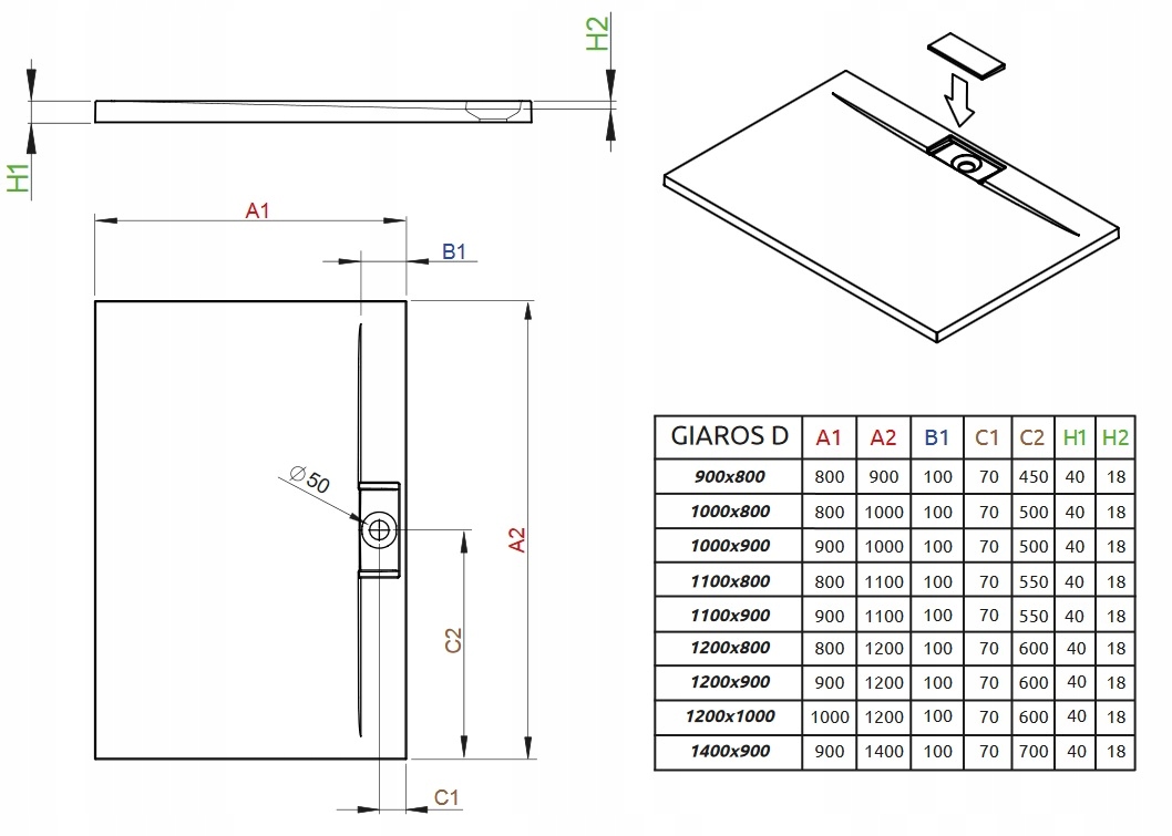 Brodzik prostokątny RADAWAY Giaros D 90x80 syfon
