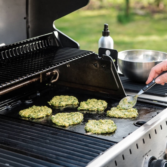 З залізною тарілкою Brool King ви приготуєте страву на двох поверхнях. на гладкому ви будете готувати делікатні та м'які їжу, такі як смажене яйце або креветки. ребриста сторінка надасть вашим стейкам або товстим шматочкам характерний діамантовий візерунок.