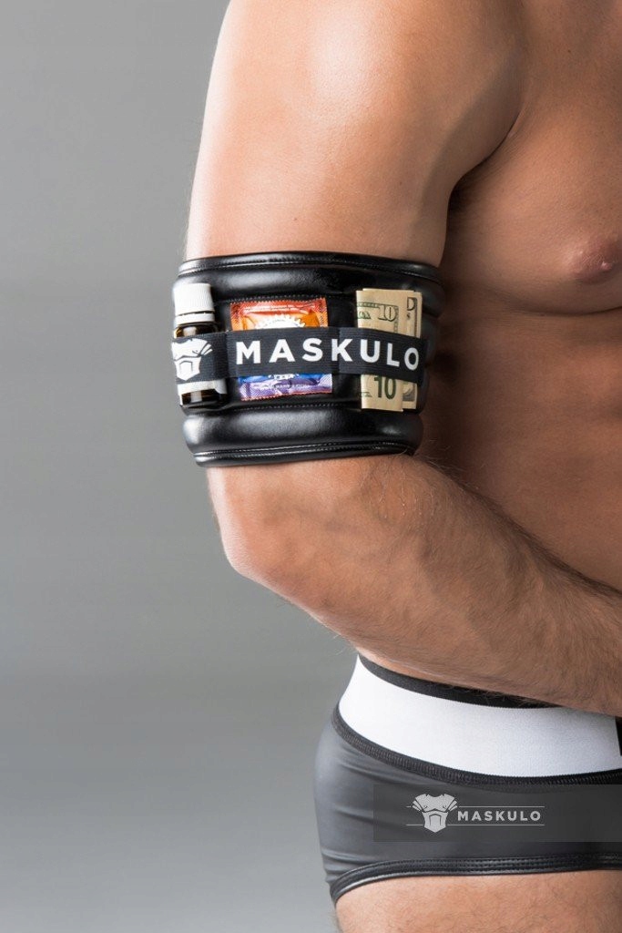 - Наш ремінець для біцепса — це не лише вражаючий елемент, який підкреслює ваші м’язи, але й зручна ручка: ви можете надіти кілька презервативів і пляшка в ній поппер для легкого доступу в будь-який час.