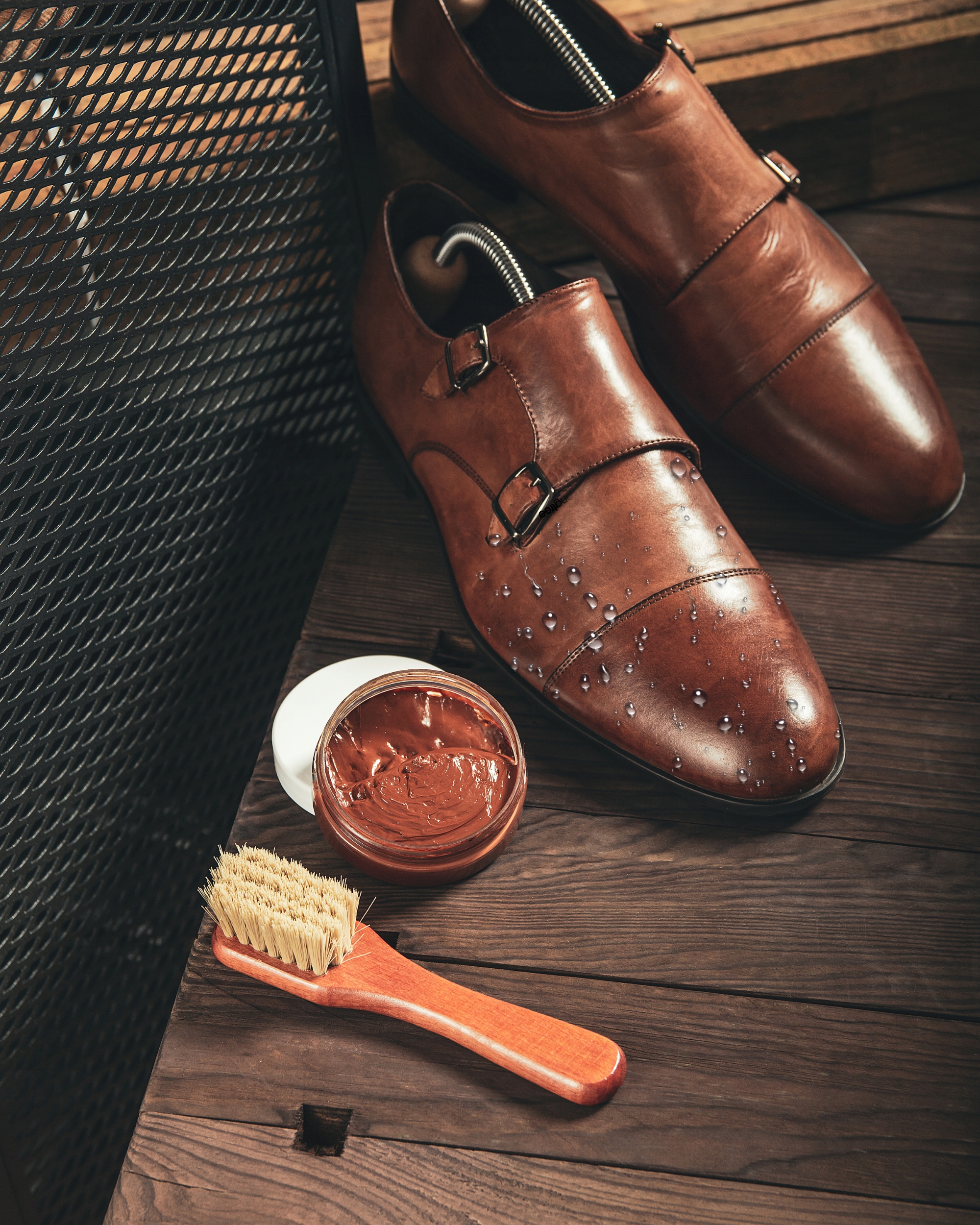 Взуття з взуттєвого воску з коричневим взуттям
