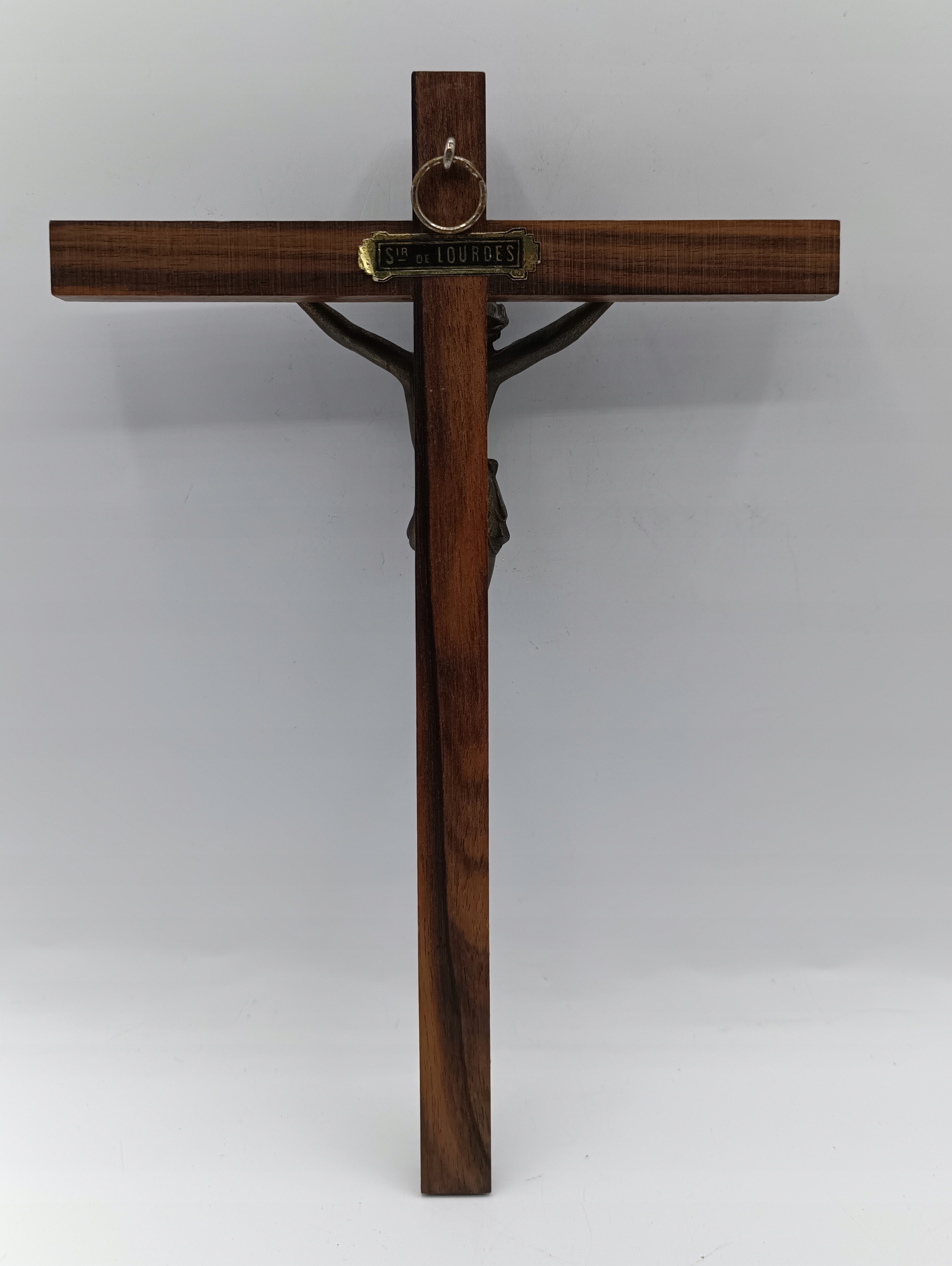 Бронзовий і дерев'яний хрест з Лурду з Франції - дуже гарний - старовинний - 20 см