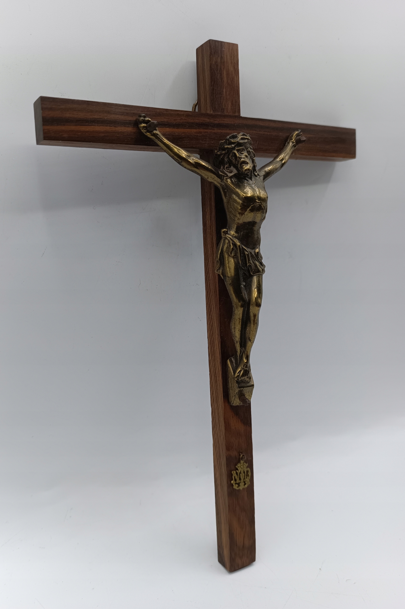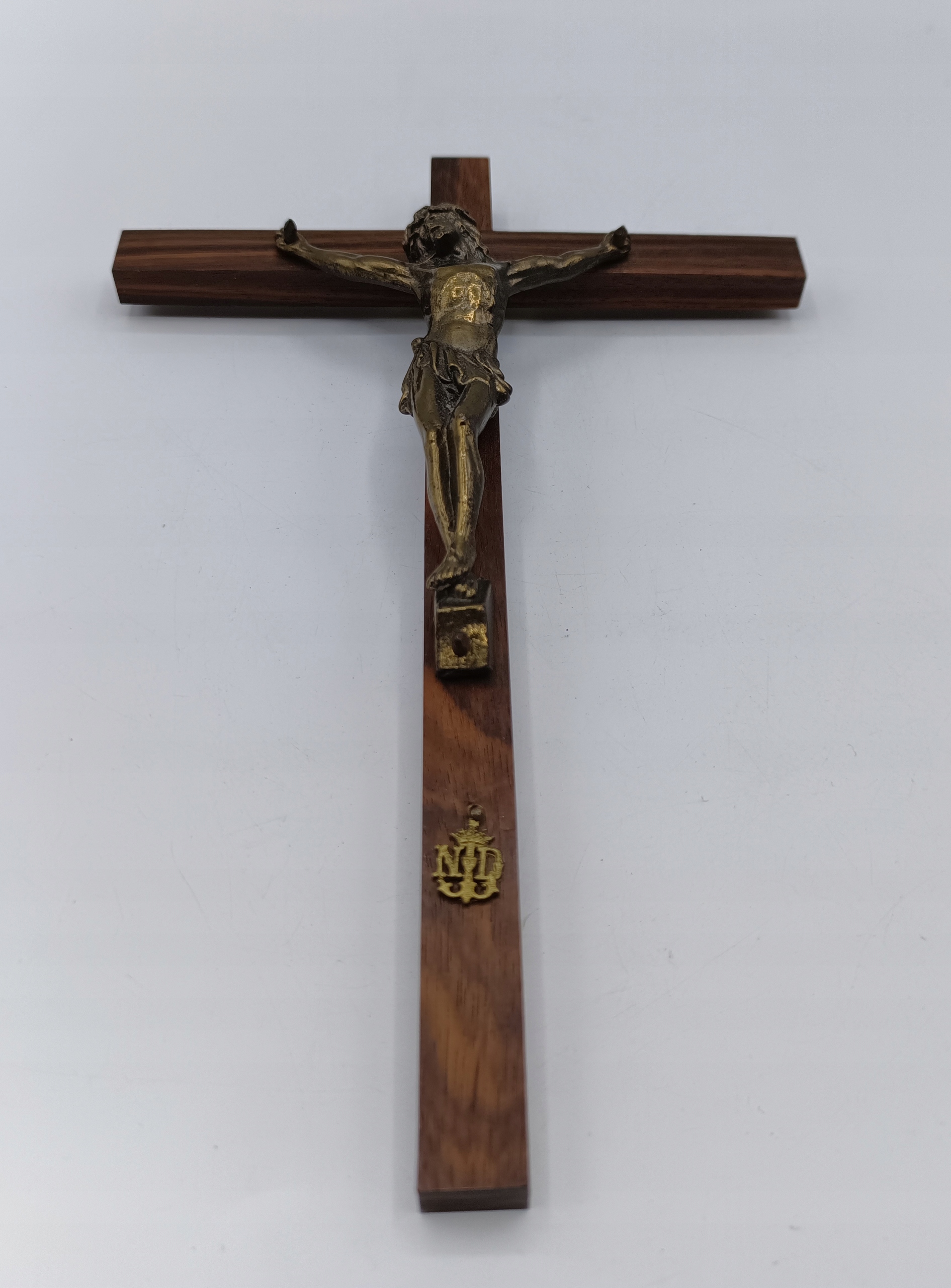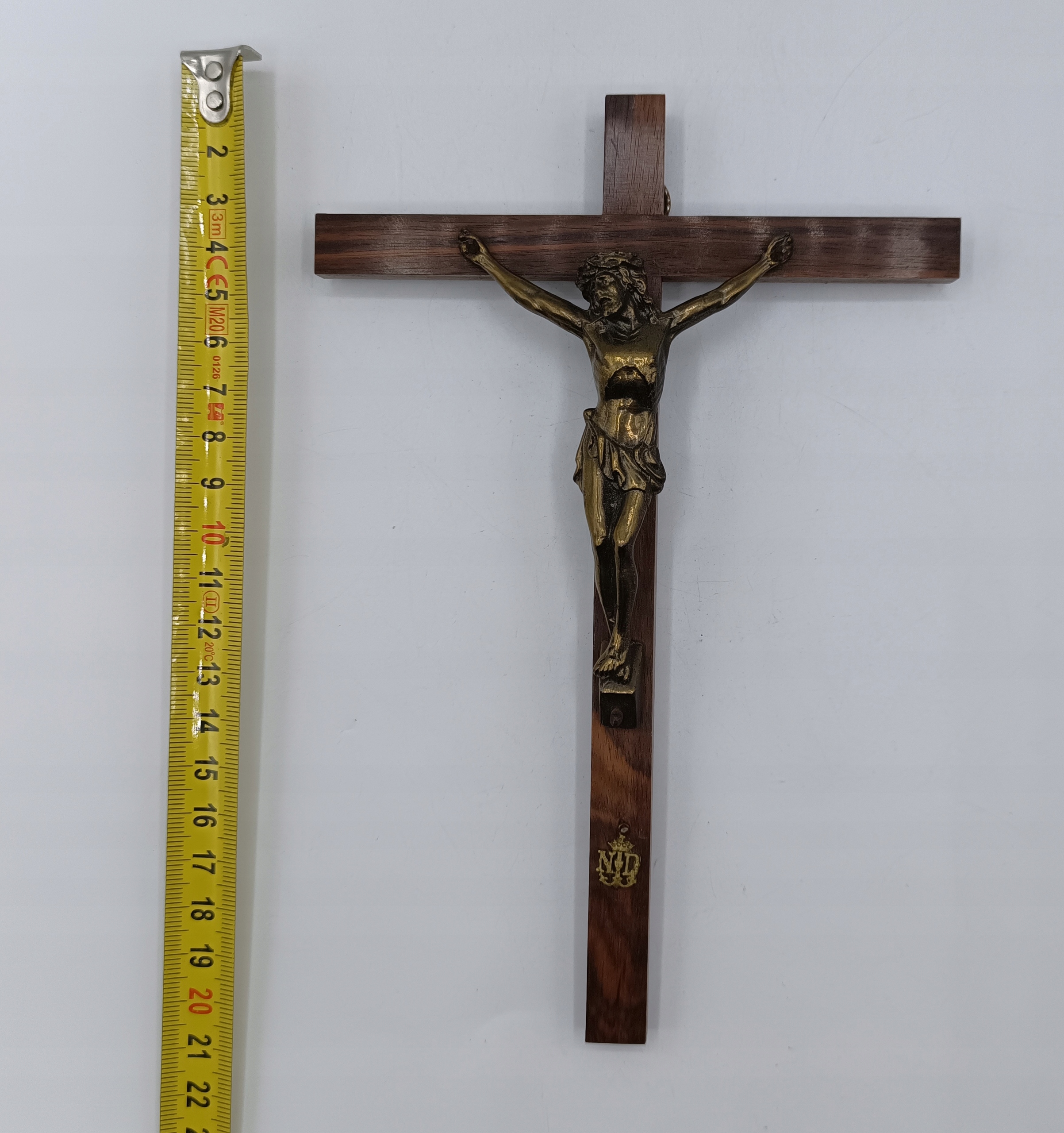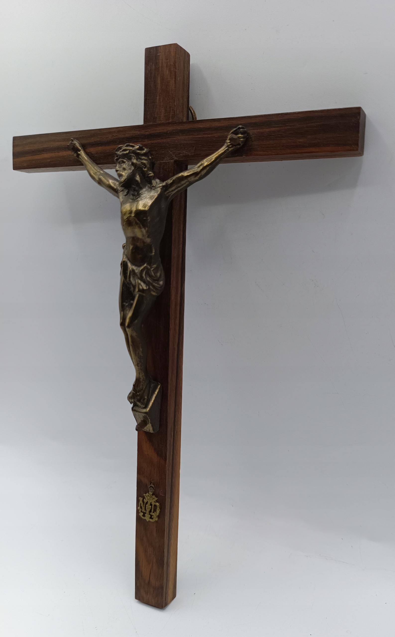 Бронзовий і дерев’яний хрест із Лурда, Франція – дуже гарний – старовинний – 20 см
