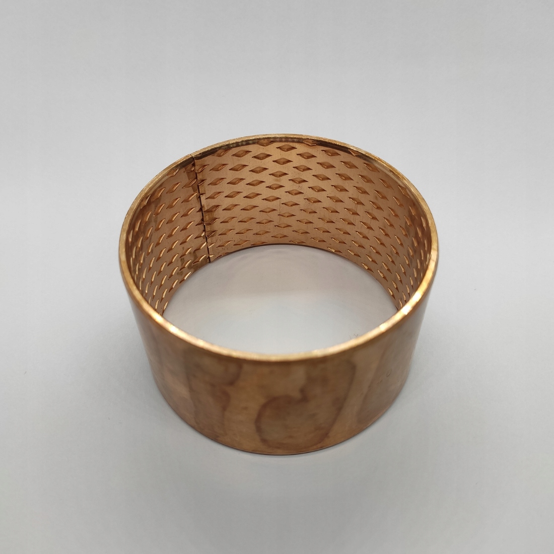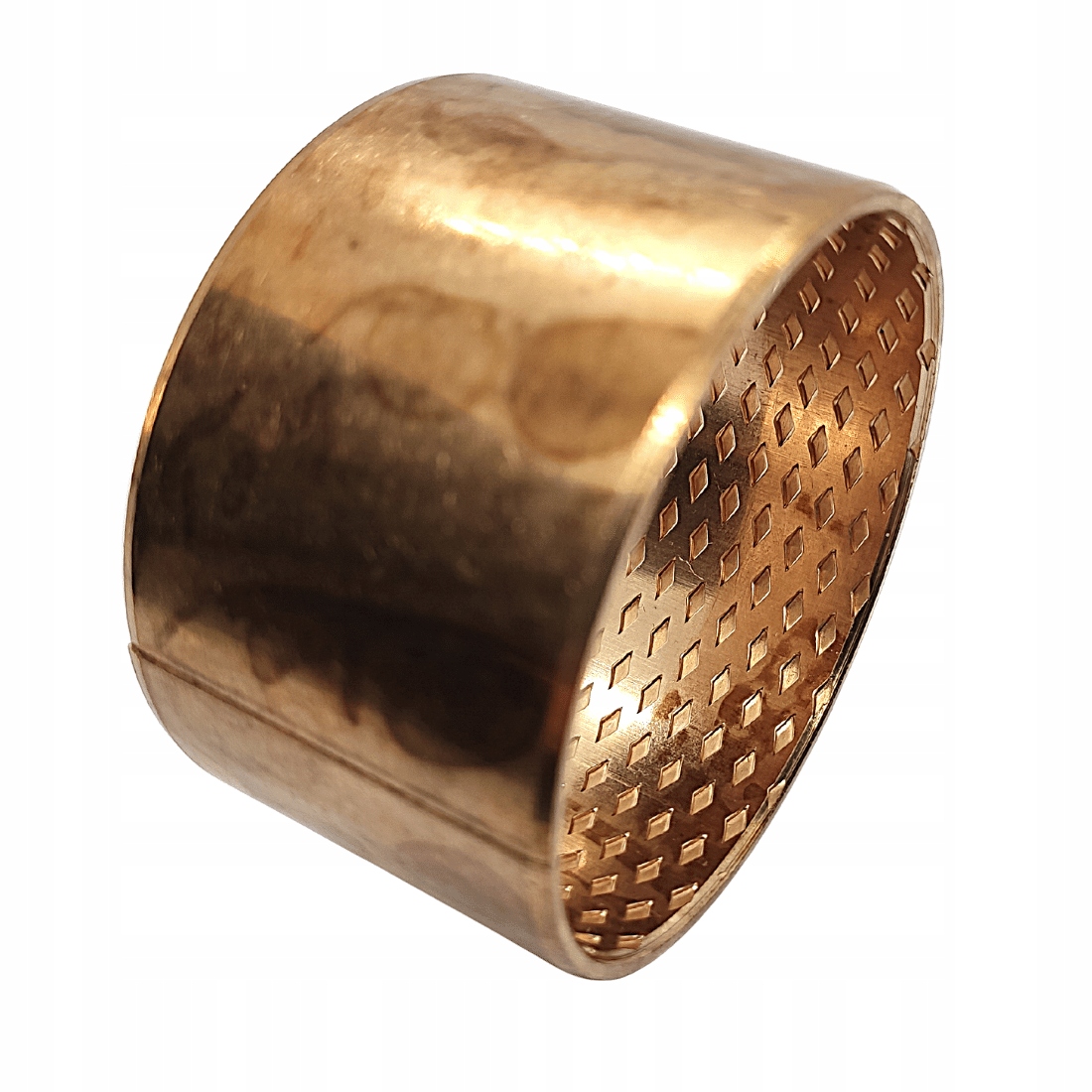 підшипник слізерину, виготовлений з тонких бронзових листів (CUSN8) з тисненням ромба, спрямованим на повільне вивільнення мастила. Вони характеризуються високою міцністю на стирання та передачею важких навантажень. Вимагає змащення. Змащувальні кишені - це міцний танк з мастилом