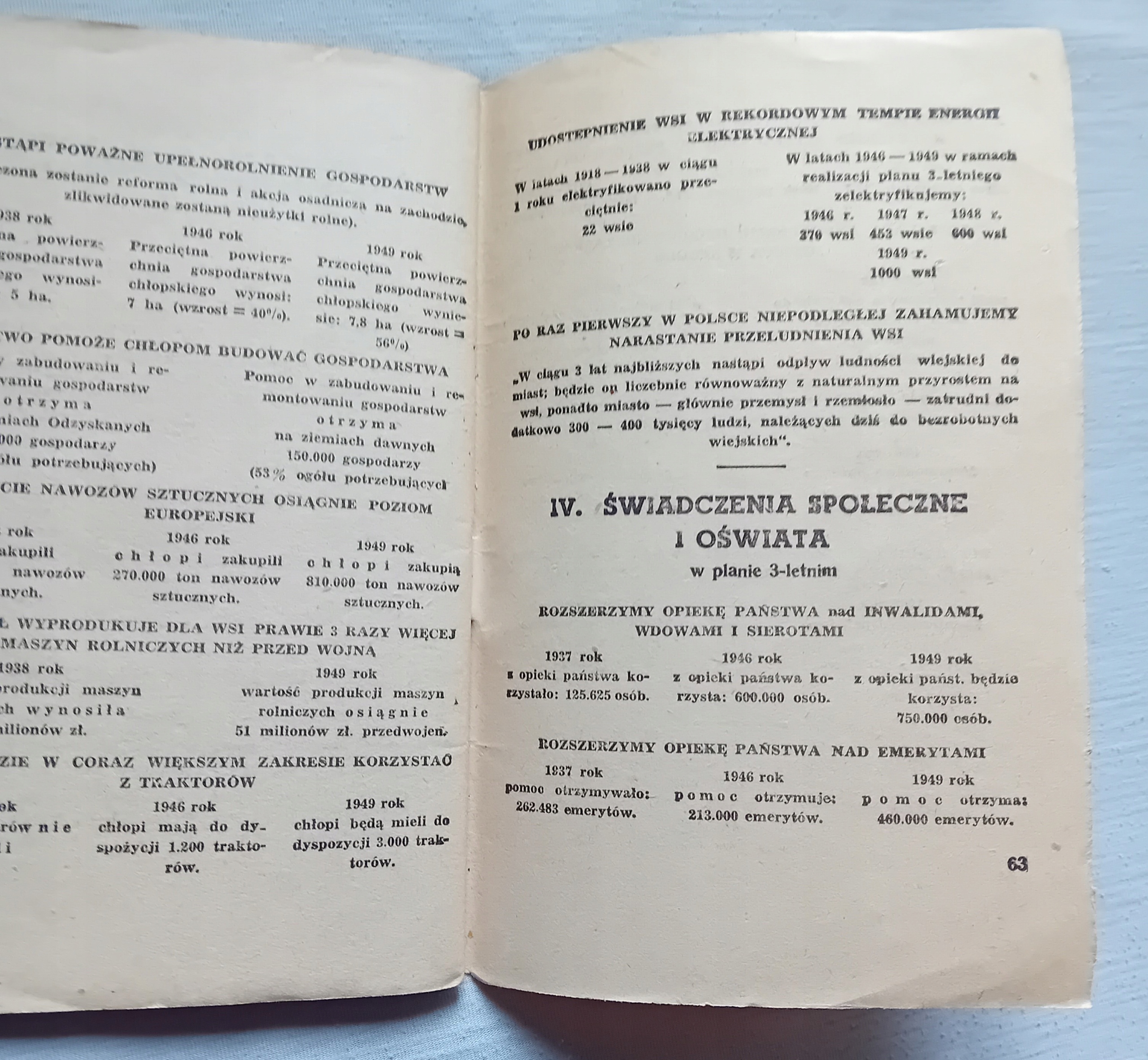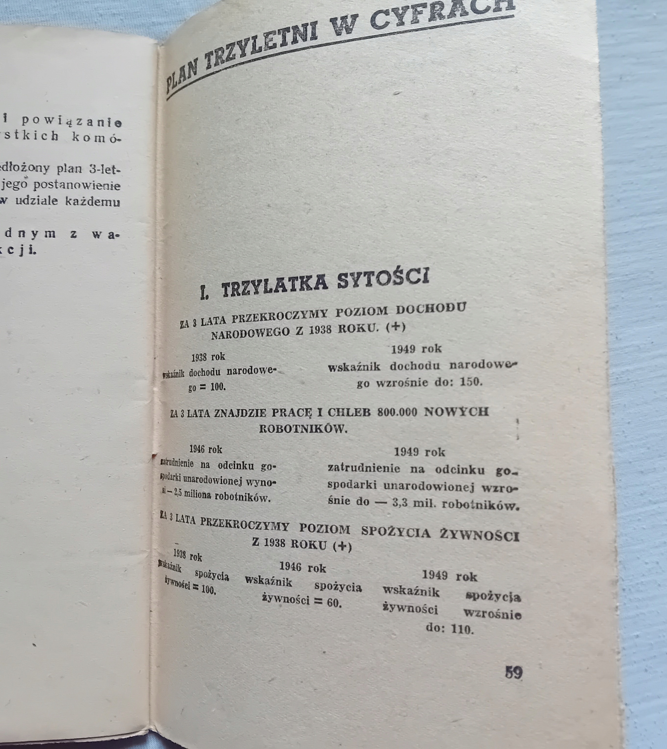 Я продаватиму пропагандистську брошуру: трирічний план економічної реконструкції для Польщі 1946-1949. Видавець: Zakłady Graphicczne "Книга" - Варшава, 1946 р. Екстремальна з 25 000 примірників. М'яке покриття, сторінки 64. Досить хороший стан. Покриття вигинами та гіпертонією на околиці. Картки пожовтіли. Роги декількох карт зігнуті. На фотографіях показані факти.
