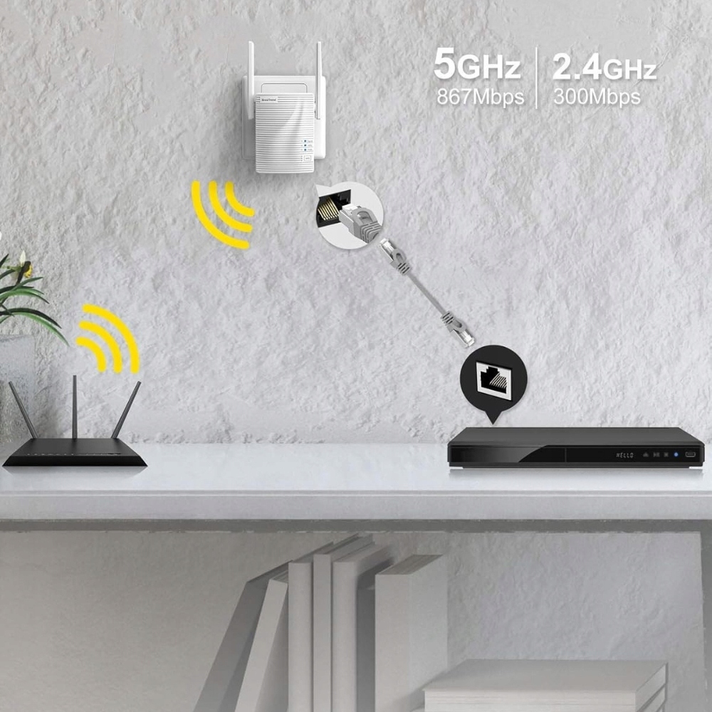 Brosstrend AC1200-це двосмуговий адаптер Wi-Fi на Ethernet для підключення проводних пристроїв до бездротової мережі. Завдяки швидкості до 1200 Мбіт/с, регульованих антенах та легкій конфігурації WPS, це ідеально підходить для смарт -телевізора, ігрових консолей або мережних принтерів.