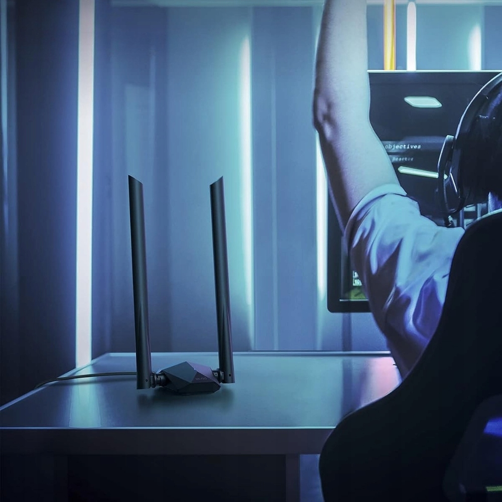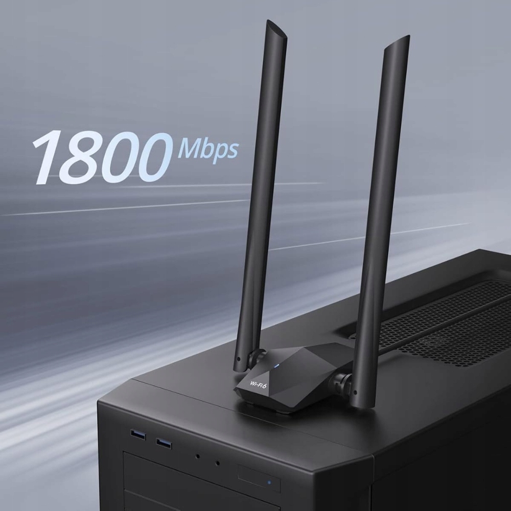 Адаптер USB Wi -Fi 6 забезпечує швидке і стабільне бездротове з'єднання до 1800 Мб/с. Оснащені подвійними обсягами, високими арматурними антенами та технологією формування променів дозволяють плавно потокове, грати та надійний діапазон через стіни та підлоги.