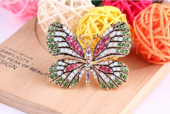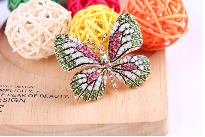 BROSZKA OZDOBNA KRYSZTAŁKI MOTYL biały i zielony
