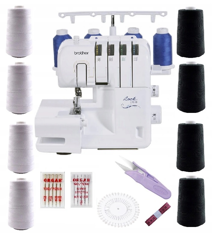 Brother 2104D — ідеальна оверлочна машина для пошиття трикотажних і тканих матеріалів — обметування, розкрою та з’єднання. Швидкий, простий у використанні, добре обладнаний. Може шити 3-х і 4-нитковим стібком, а також накатним стібком (hemeżka). Оснащений вільним плечем, автоматом для швидкого заправлення нижнього петельника, знімним строчковим язичком, можливістю відключення ножа.