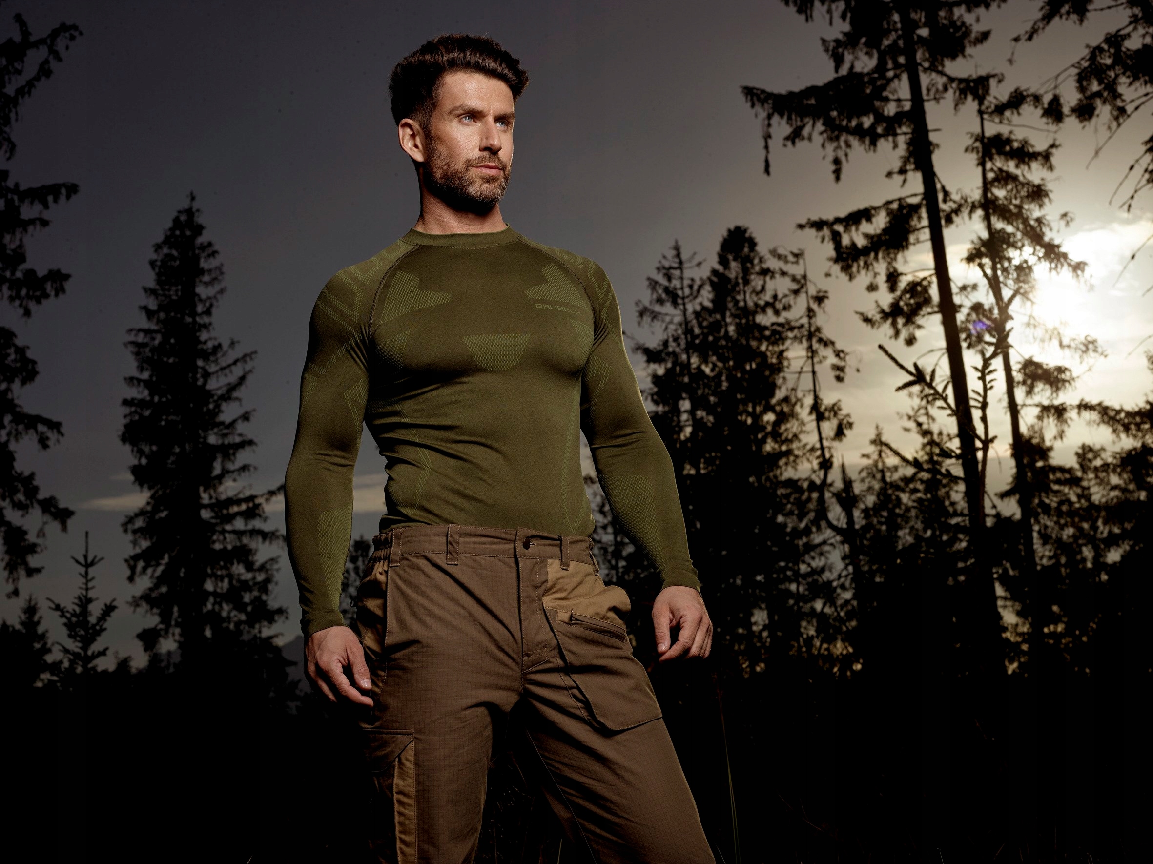 Одяг колекції Ranger Thermo виготовляється за безшовною технологією з двошарового дихаючого трикотажу середньої товщини.