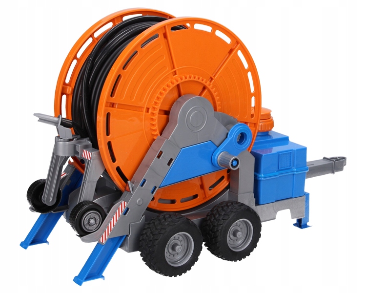 Правильне зрошення має вирішальне значення в сучасному сільському господарстві, тому причіп Bruder 02034 є важливою статтею в каталозі техніки BRUDER. Молоді фермери можуть розгортати 1,8-метровий шланг за допомогою котушки для шланга з кривошипним приводом, до якої прикріплено детальний обприскувач. Відповідно до девізу компанії BRUDER «Як наяву» встановлено бак з робочим насосом. Завдяки насосній системі вода розподіляється легко та реалістично. Підходить до всіх тракторів Bruder.
