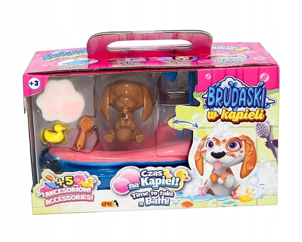 У колекції Brudaski in the Bath є чарівні собаки, які подарують нескінченне задоволення від бруду та миття! Ці унікальні іграшки створені, щоб дарувати радість дітям, які люблять творчі та прості ігри. Кожну собаку можна забруднити спеціальною грязюкою, а потім промити під водою, залишивши її чистою та свіжою. Купання з Brudaski - справжнє задоволення, особливо завдяки п'яти аксесуарам, які входять у комплект, які урізноманітнюють кожне купання.
