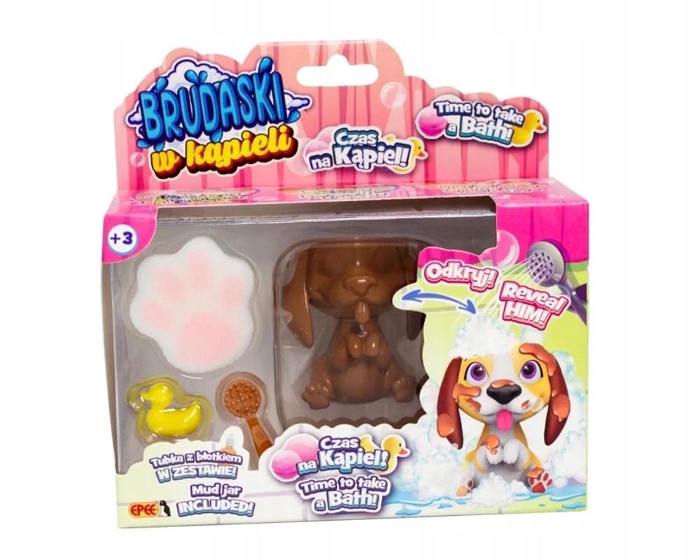 Колекція Brudaski in the Bath включає чарівних собак, які подарують нескінченне задоволення від бруду та миття! Ці унікальні іграшки створені, щоб дарувати радість дітям, які люблять творчі та прості ігри. Кожну собаку можна забруднити спеціальною грязюкою, а потім промити під водою, залишивши її чистою та свіжою. Купання з Brudaski - справжнє задоволення, особливо завдяки аксесуарам, які входять в комплект, які урізноманітнюють кожне купання.