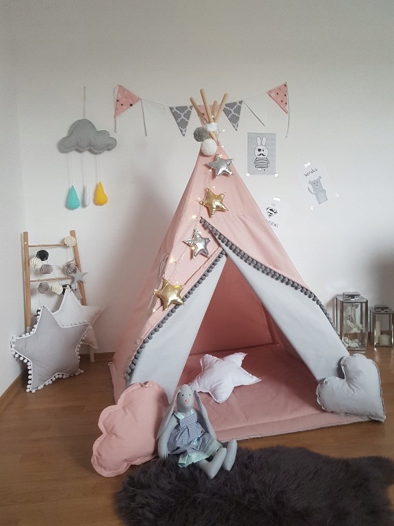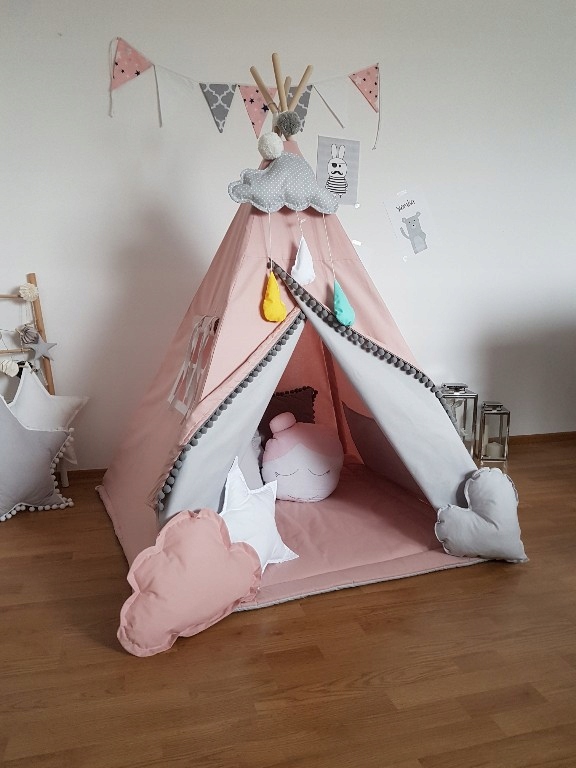 Тіпі - чудова схованка, місце для втілення різноманітних ідей, сприяє творчим іграм, і вона сподобається не лише вашій дитині, а й іншим домочадцям. Ідеально вписується в дитячу кімнату і у вітальню як модне і сучасне доповнення.