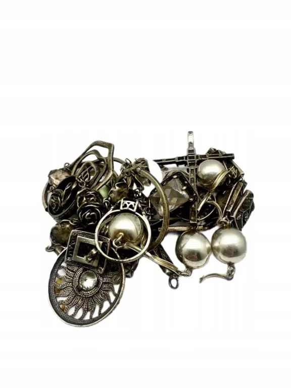 Срібний лом, суміш пошкоджених ювелірних виробів, – це пропозиція для людей, які цікавляться сріблом як сировиною або інвестиційним продуктом. Набір складається з різних срібних прикрас у пошкодженому стані, призначених для подальшої обробки або відновлення металу.