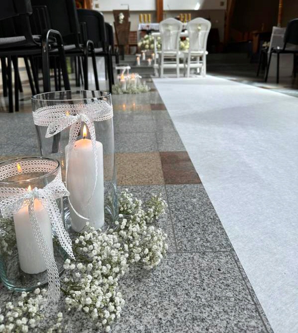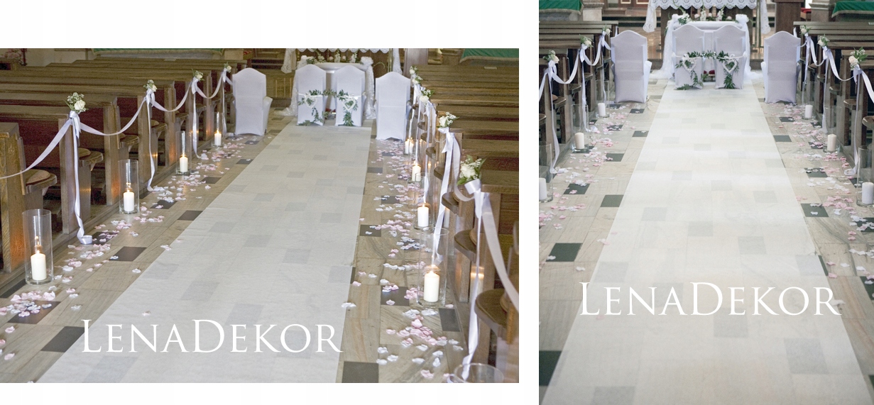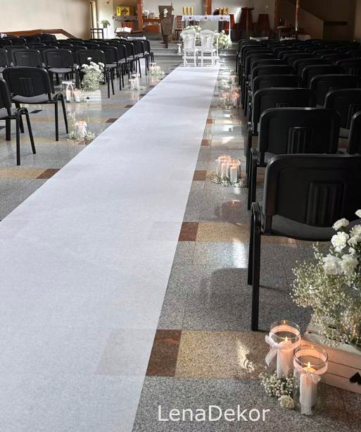 Улюблений продукт професійних прикрас. Незамінний у кожному флориста. Ідеально підходить для прикраси церков, розташування цивільних весіль, декору весільних залів або святкування на свіжому повітрі. Ідеально підходить як захист традиційного білого килима.
