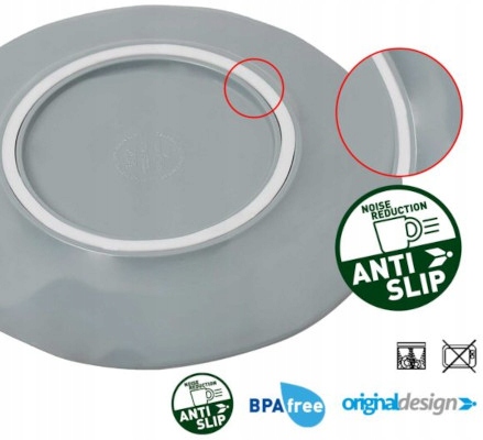 Всі елементи набору оснащені системою проти ковзанняANTI SLIP.Кожне блюдо приклеєне до дна гумою. Це робить посуд стійким, а використання під час подорожі абсолютно безпечним і комфортним.