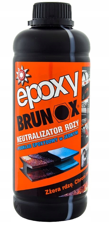 Brunox Epoxy - це прозора рідина бурштинового кольору, яка утворює органічну сполуку заліза з нейтралізованим корозійним шаром. Отриманий чорний, дуже компактний і стійкий шар забезпечує тривалий антикорозійний захист, а завдяки вмісту епоксидної смоли також є чудовим грунтовним шаром.