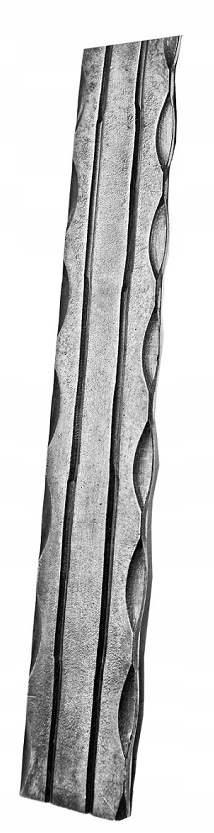 Плоский брус 40x5 мм, який використовується для балюстрад, огорож, воріт, поручнів та інших сталевих конструкцій. Краї плоского бруска забиті молотком, в центральній частині є дві борозни.