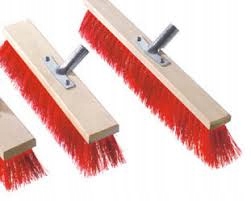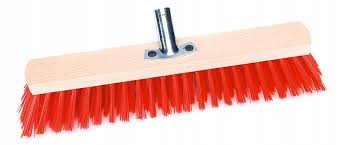 Вулична мітла з дерев’яним тілом у робочій частині, виготовленій з твердих пластикових щетинок. Корисно у зовнішніх чистячих роботах, наприклад Для підмітання листя, піску, пилу, свіжого снігу тощо
