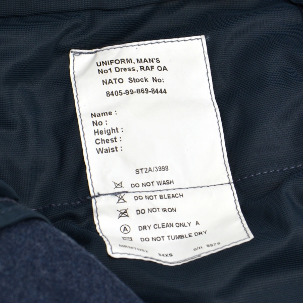 Оригінальні штани з ресурсів британської армії. Вони є частиною уніформи Королівських ВПС - №. 1 парадна форма. Виготовлений з щільного матеріалу. Штани мають дві кишені спереду і одну ззаду. Застібається на блискавку і два гачки всередині пояса. Штани не мають шлевки.