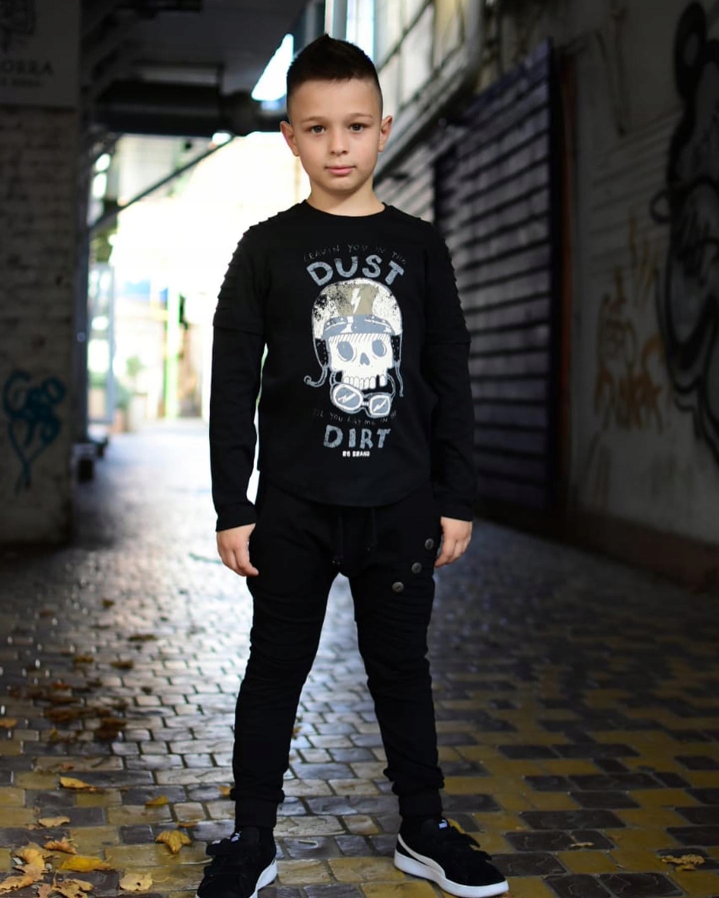 Красиві штани для хлопчика в спортивному чорному кольорі на гудзиках. Опущена промежину. Вони мають шнурок на талії та додатковий шнурок, завдяки якому ми можемо підігнати штанці індивідуально під дитину. Дуже зручно, добре сидить.