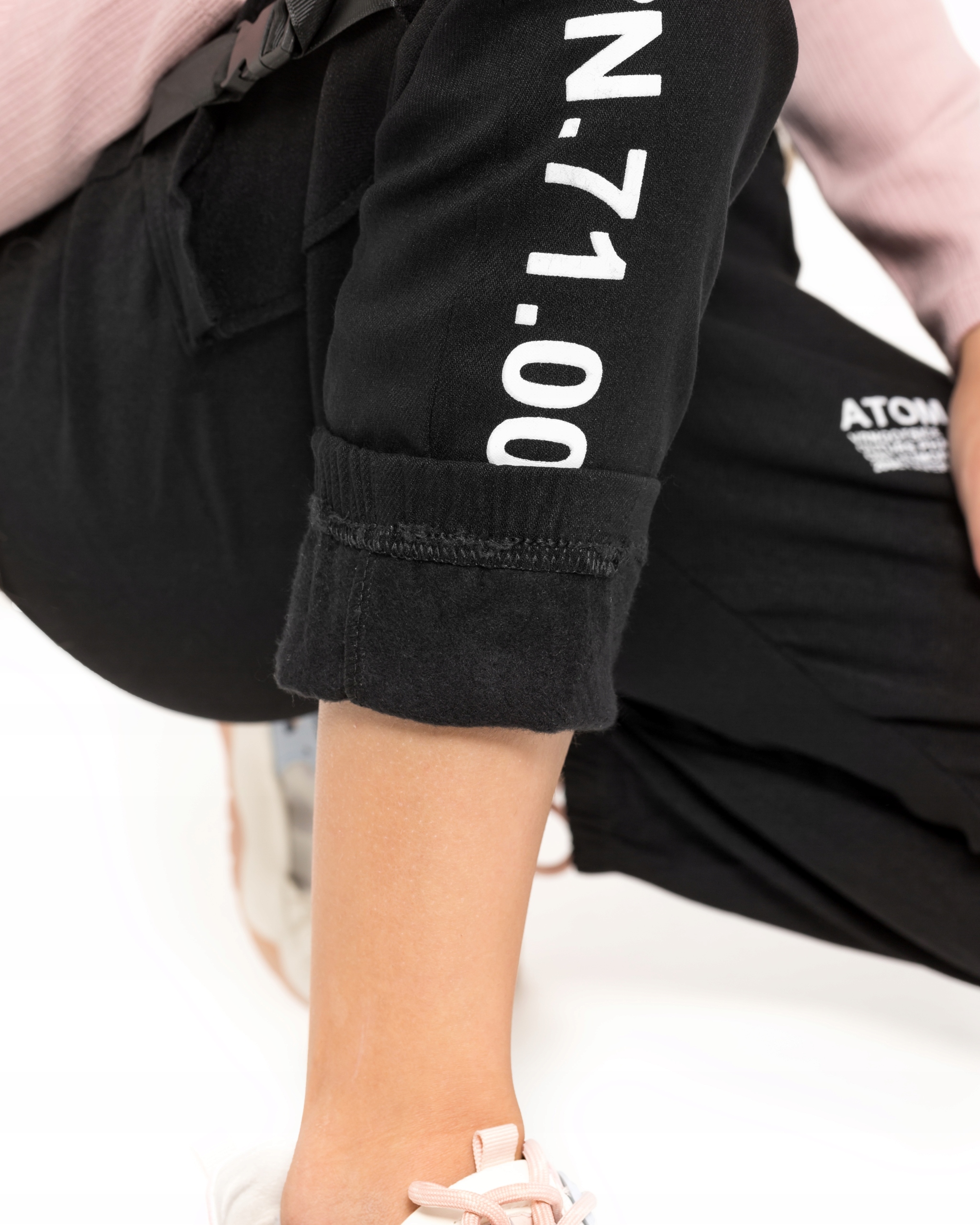 Наш товар доступний у розмірах - 130/140 см, 140/146 см, 146 /152 см, 152/158 смі в чотирьох модних кольорах - чорний, зелений, синій і рожевий. Штани мають чотири кишені спереду та написи на штанинах.Нижки оброблені манжетом, а завдяки еластичному поясу штани не сповзаютьі ідеально сидять по фігурі.