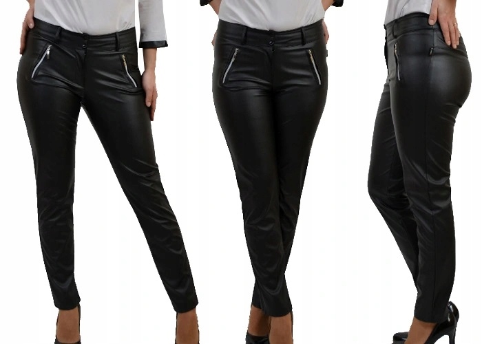 БРЮКИ НА блискавці з ЕКО ШКІРИ ЧОРНОГО розміру 46