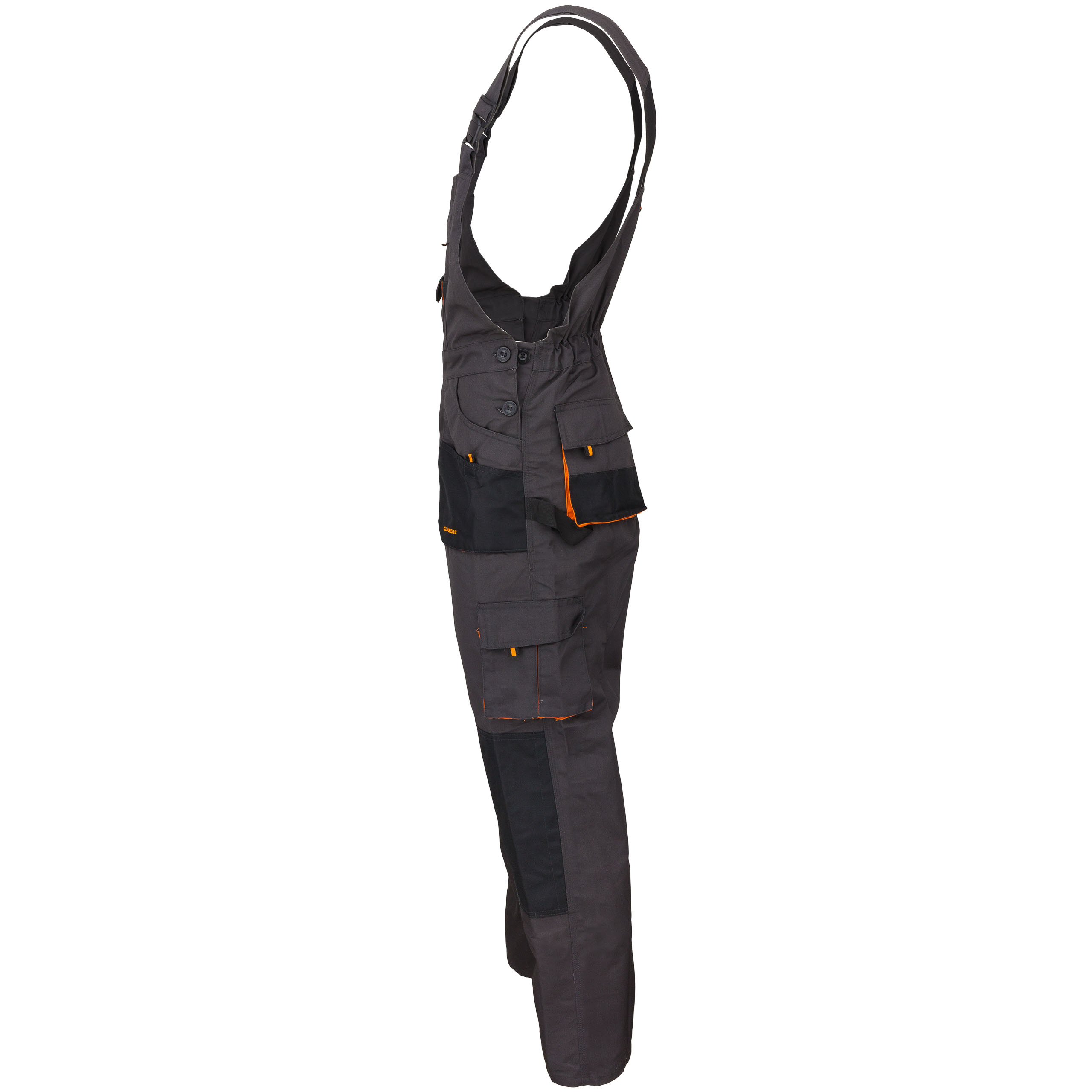 - можливість регулювання ширини талії завдяки бічній застібці на гудзики та вшитому еластичному поясі, що забезпечує комфорт при згинанні та роботі на колінах