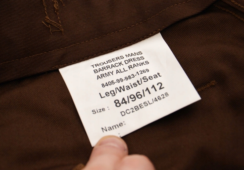 Вицвілий із застібкою-блискавкою та класичною застібкою, що використовується в британських військових штанах. Виконано в коричневому/хакі кольорі. Штани є частиною парадної форми британської армії. Вони мають 4 кишені - дві спереду та дві ззаду.