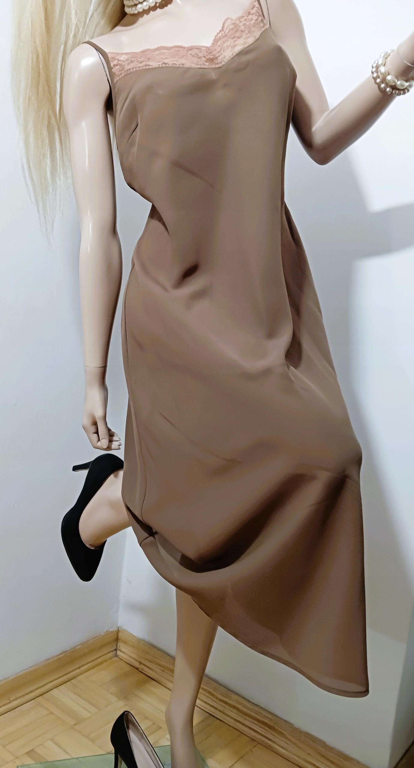 BRĄZOWA KARMELOWA HALKA SZYFONOWA Z KORONKĄ MIDI VINTAGE GOTHIC XXL