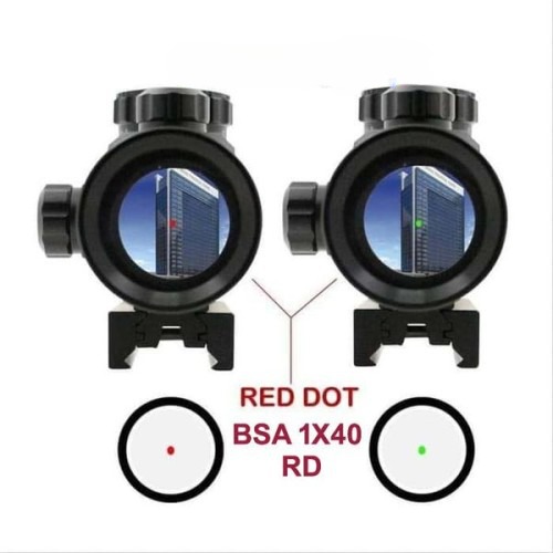 BSA КОЛІМАТОР 1X40RD ЗЕЛЕНИЙ ЛАЗЕР + ЧЕРВОНИЙ МЕТАЛ