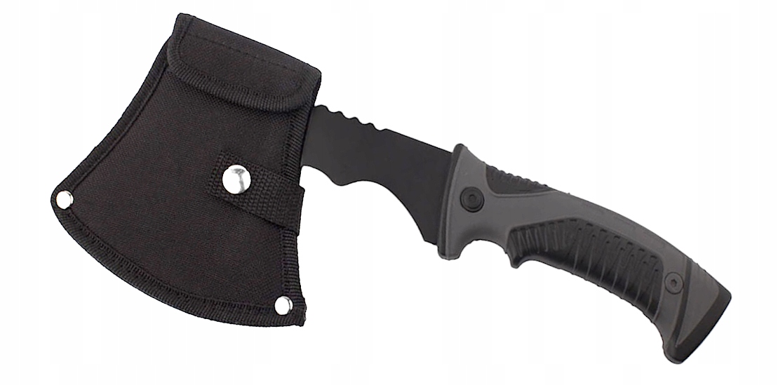 Тактична сокира має чорний чохол для леза, який можна прикріпити до пояса.
