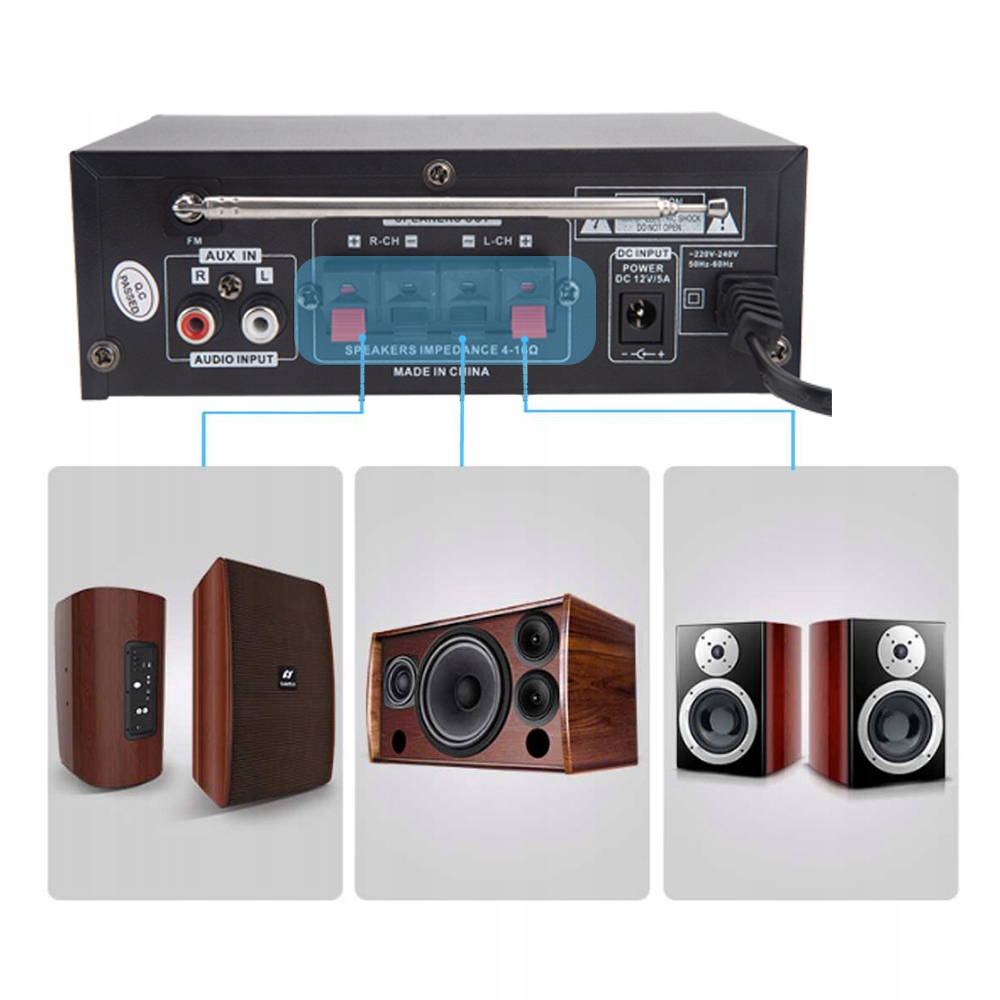 🎵-Цей підсилювач потужності підтримує TF-карти, U-диски, відтворення у форматі MP3, підтримує стерео FM-радіо.