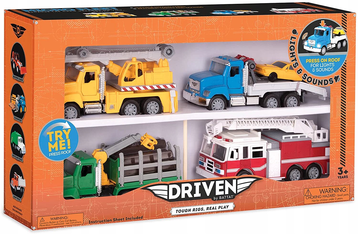 Мега набір - набір цілих 4 вантажівок від відомої канадської компанії Battat. Пожежна команда, автоевакуатор, лісовоз, кран. Дуже висока якість виконання. Супер задоволення гарантовано!