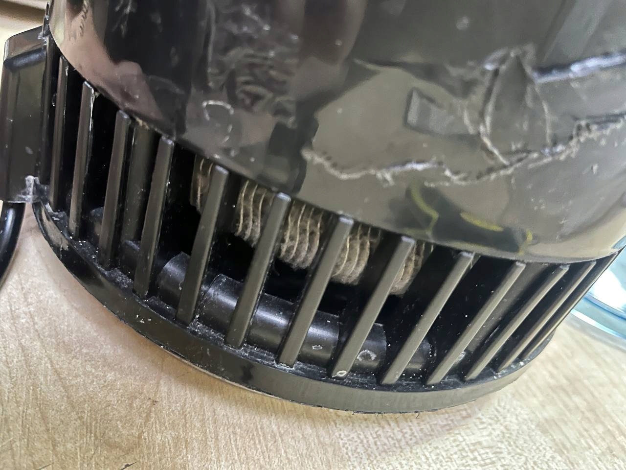 Має видимі сліди використання: ложа підгоріла, зовнішній корпус місцями подряпаний і потертий, вентилятори забруднені та забиті.