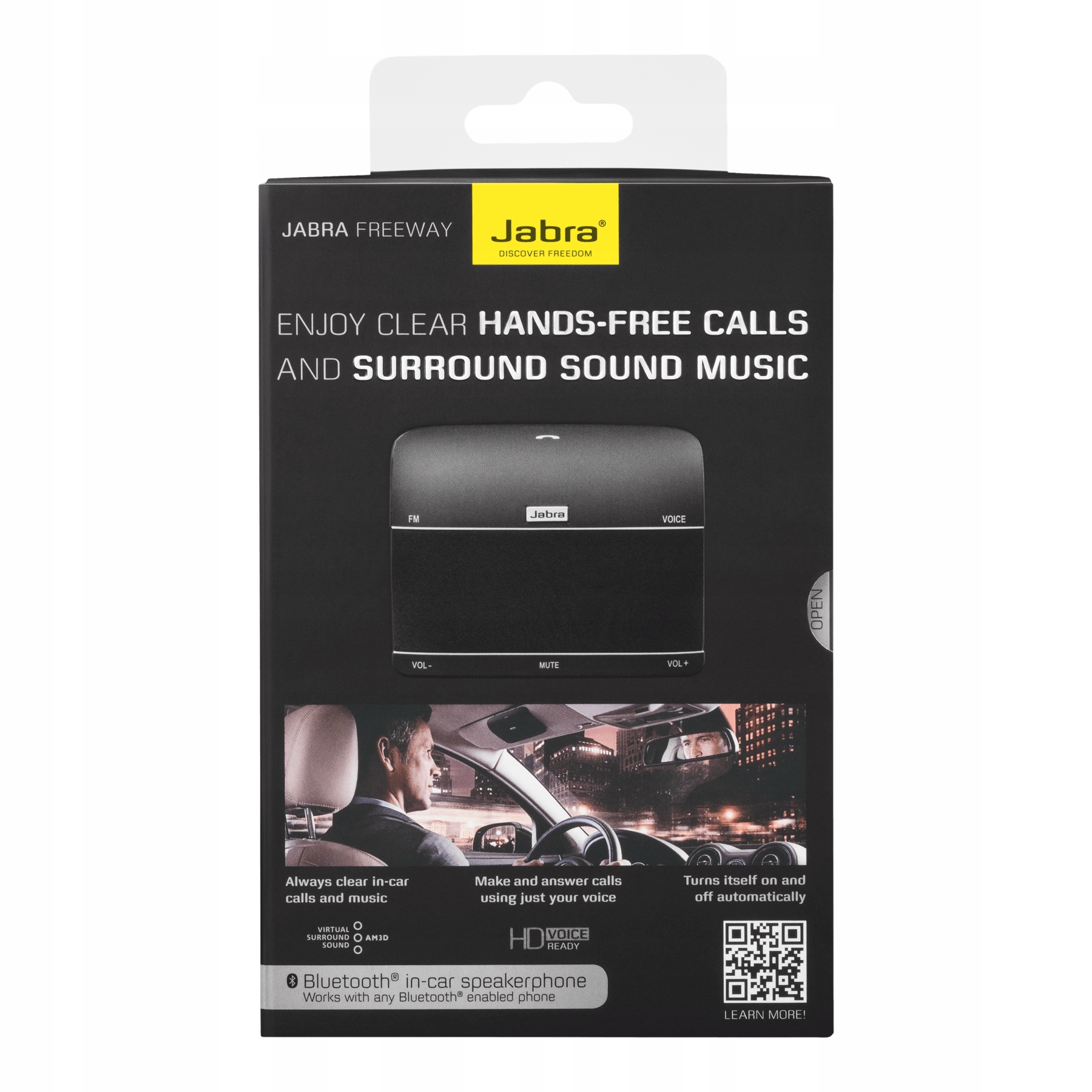 Телефон Jabra Freeway забезпечує найкращий звук, доступний для автомобільних технологій. Завдяки цьому ви можете зосередитися на дорозі та покласти руки на кермо, не турбуючись про свою та чужу безпеку. Автомагістраль вмикається, коли ви заходите в машину, і включає ідентифікатор абонента з голосовим керуванням, перетворюючи ваш автомобіль на приватну конференц-зал.