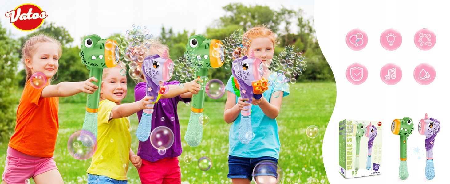 - ⭐Набір кулькового пістолета VATOS включає зелену машину для приготування бульбашок із крокодилом, фіолетову машину для бульбашок, 2 пляшки рідини для наповнення по 180 мл.